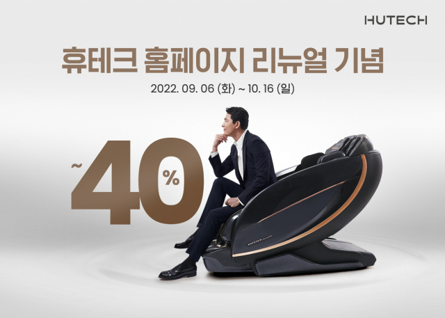 △휴테크산업이 추석을 앞두고 공식 홈페이지 리뉴얼 오픈 기념 프로모션을 진행한다. '휴테크가 당신의 휴식 라이프를 찾아드립니다'라는 콘셉트로 나의 라이프스타일에 맞는 안마의자를 찾아주는 '큐레이션' 시스템을 홈페이지에 구현했다. 오는 10월 16일까지 진행되는 행사 기간 중 휴테크 공식 홈페이지에 가입하는 모든 고객들에게 안마의자 구매 시 사용할 수 있는 할인 쿠폰을 발행한다. 안마의자 모델 별로 적용할 수 있는 할인 쿠폰은 상이하며, 휴테크 최고사양 플래그십 하이엔드 안마의자인 '카이(KAI) GTS9 아트모션'의 경우 최대 40% 할인 혜택을 받을 수 있다. 안마의자를 구입한 모든 고객들에게 눈마사지기, 안마의자 전용 고급 러그 등 휴식의 질을 높일 수 있는 다양한 사은품도 증정한다. SNS 이벤트도 준비했다. 인스타그램, 블로그, 카페 등 개인 SNS에 구매 후기를 작성하고 캡쳐 이미지를 담당자 메일로 전송하면 자동으로 응모가 완료된다. 이후 추첨을 통해 우수 후기를 작성한 3명에게 휴테크 종아리&발마사지기를 선물로 제공한다.