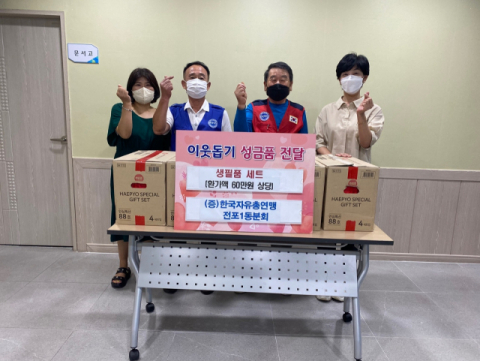 한국자유총연맹 전포1동 분회(회장 강태수)는 추석을 앞두고 9월 7일 전포1동 어려운 이웃을 위한 생필품(환가액 60만원)을 전포1동 주민센터(동장 김옥경)에 기탁하였다.