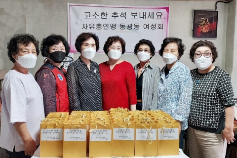부산 중구 동광동 자유총연맹여성회(회장 김순옥)는 2일 관내 이웃 30세대에 참기름 2병과 깨소금 1병을 전달했다.