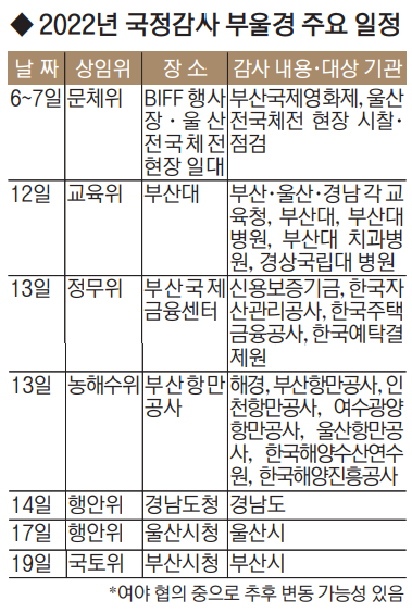 윤석열 정부의 첫 국정감사가 약 3주 앞으로 다가왔다. 국회 각 상임위원회는 내주까지 국정감사 계획서 채택을 위해 협의에 속도를 내는 가운데, 부산·울산·경남(PK) 일정과 주요 쟁점에 관심이 쏠린다.