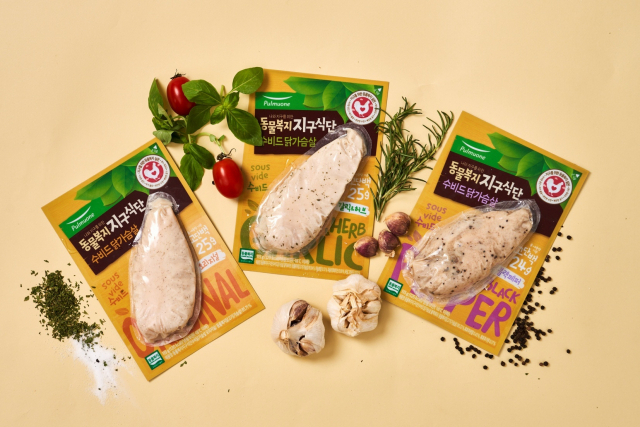 △풀무원식품은 동물복지 원료를 사용한 제품을 기반으로 하는 식품 브랜드 '동물복지 지구식단'의 신제품 '수비드 닭가슴살 3종(오리지널, 블랙페퍼, 갈릭&허브)'을 출시했다고 16일 밝혔다. 이번 신제품은 크라우드 펀딩 플랫폼 '와디즈' 단독 론칭으로 첫선을 보인다. 동물복지 인증을 받은 국산 닭고기를 사용한 제품이다. 동물복지 기준을 엄수해 사육 환경을 조성한 동물복지 농장에서 키운 뒤 운송, 도축까지 전 과정에 동물복지 인증이 완료된 국산 닭고기만을 사용했다. 패키지에는 풀무원 축산물 가공 제품 최초로 동물복지 인증마크를 주 표시면에 삽입해 소비자가 동물복지 제품임을 쉽게 인지하고 좋은 취지에 동참할 수 있도록 했다. 차별점은 '수비드 공법'으로 완성한 부드러운 식감이다. 진공포장한 닭가슴살을 적정한 물의 온도를 유지한 채 길게 조리하는 수비드 공법으로 완제품의 촉촉함을 극대화했다. 자극적인 소스 맛을 배제하고 건강한 맛으로 완성하는 데 심혈을 기울였다. 제품 칼로리나 염분 함량이 높아지지 않도록 닭 냄새를 제어하는 향신료만으로 간을 해 닭가슴살 본연의 맛을 최대한 살렸다. 풀무원은 와디즈와 홍보 활동을 협업해 '지구식단 4행시 이벤트', '72시간 구매 이벤트' 등 다양한 프로모션도 계획하고 있다. 와디즈에서는 현재 펀딩 개시 알림을 받도록 설정할 수 있고 다음 달 11일까지 단독 판매할 예정이다.