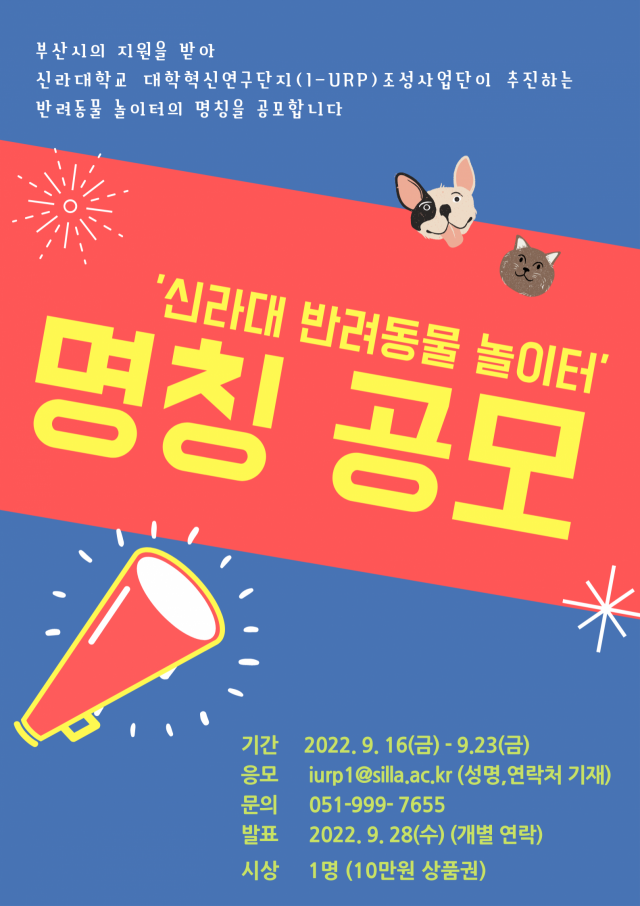 신라대학교(총장 김충석)가 반려동물 놀이터(가칭)의 명칭을 공모한다.
