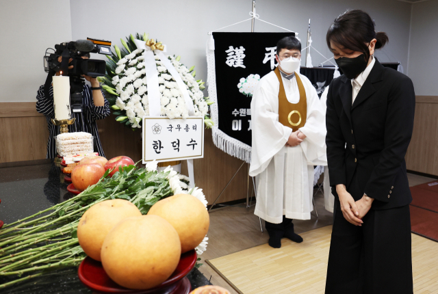 김건희 여사가 8월 25일 오후 암·희귀병 투병과 생활고에도 불구하고 복지 서비스의 도움을 받지 못한 채 세상을 떠난 ‘수원 세 모녀’ 빈소를 찾아 조문하고 있다. 연합뉴스