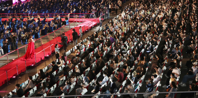 2021년 10월 6일 부산 해운대 영화의전당에서 열린 제26회 부산국제영화제(BIFF) 개막식에서 배우들이 레드카펫을 밟고 입장하고 있다. 정대현 기자 jhyun@