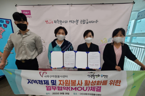 사하구자원봉사센터(센터장 황명옥)는 9월 28일 수요일 오전 10시 사하구상권활성화추진단(단장 조영미)과 자원봉사 활성화를 위한 업무협약을 진행하였다. 이번 협약을 통해 사하구자원봉사센터는 사하구상권활성화추진단과 연계하여 시너지를 창출할 수 있는 방안을 지역사회와 함께 고민할 계획이다.