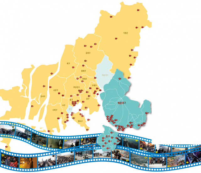구 단위에서도 작지만, 변화가 느껴진다. 자연환경과 도심의 모습을 두루 갖춘 해운대구가 최근 13년간 평균 촬영 일수 138일로 부동의 1위를 차지하고, 기장군(평균 49.5일), 남구(48.3일), 수영구(46.4일), 중구(43.8일), 영도구(42.7일)가 엎치락뒤치락 2위 자리를 놓고 경쟁했다. 16개 구·군이 편차는 있어도 골고루 이름을 올렸다.