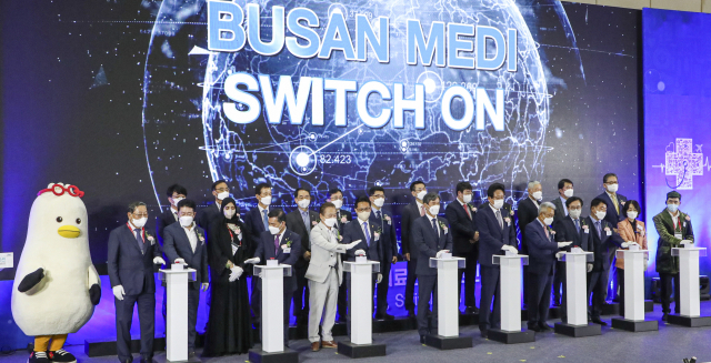 개막식 세리머니로 주요 내빈들이 단상에 올라 ‘부산 메디 스위치 온’이라는 구호에 맞춰 일제히 버튼을 눌러 화려한 개막 축포를 터뜨리자 행사장의 열기는 최고조에 달했다.