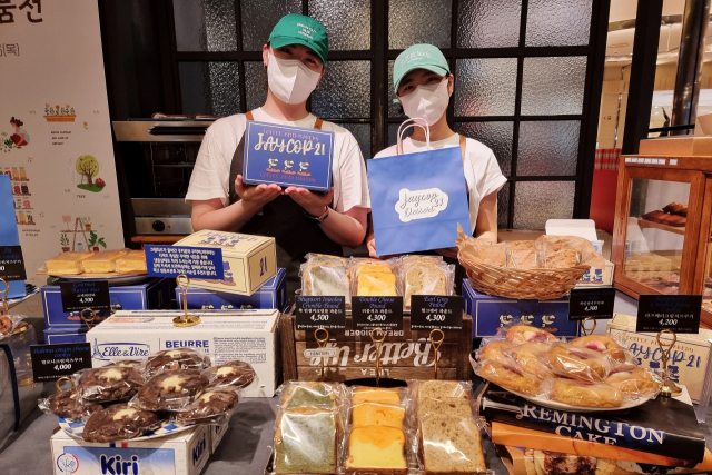 신세계 센텀시티는 오는 6일까지 지하 1층에서는 부산의 10개 업체가 판로를 개척하는 ‘중소기업 인기 상품전’을 진행한다. ‘자이콥21’의 직원들이 직접 만든 구움과자를 소개하고 있다. 신세계 센텀시티 제공