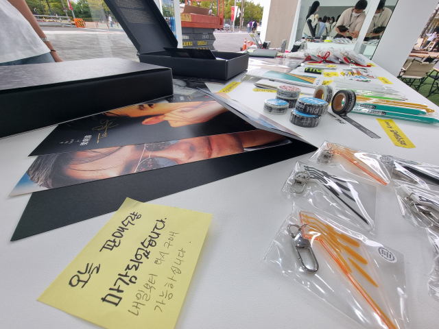 5일 BIFF 굿즈스토어에서 당일 판매분이 동이 난 ‘양조위 스페셜 굿즈 패키지’(위)와 같은 날 오후 4시께 APEC 나루공원에서 열린 영화의 숲 조성 행사. 김종진 기자·안지현 인턴기자 kjj1761@
