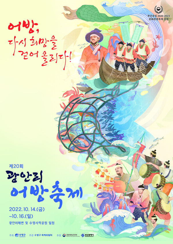 부산 수영에서는 10월14일부터 16일까지 광안리해변 및 수영사적공원 일원에서 '어방, 다시 희망을 걷어 올리다!'라는 주제로 제20회 '광안리 어방축제'를 진행한다.