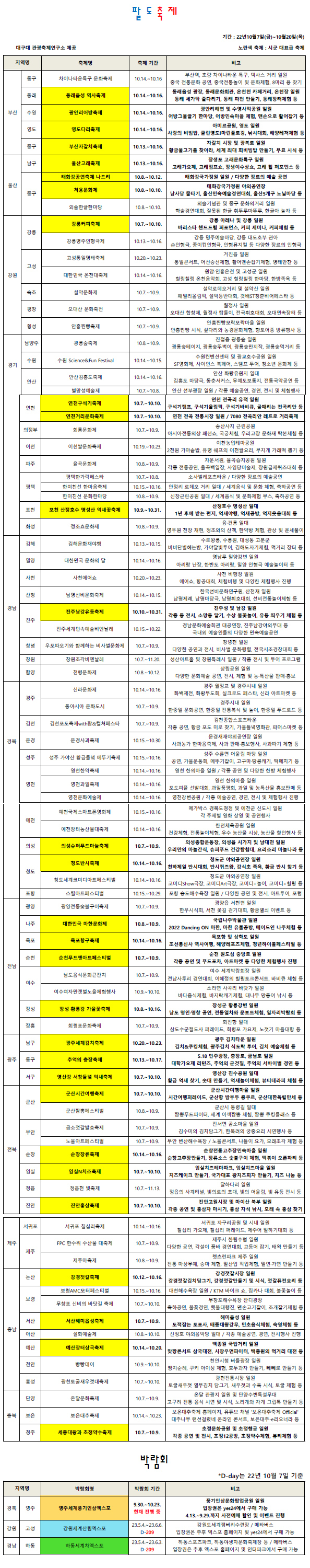 한편, 한국지방신문협회 회원사 들은 대한민국의 지방축제활성화를 위해 각 지자체 등의 협조를 받아서 매주 진행되는 중요 축제 관련 기사게재, 금주에 진행되는 전국 모든 축제일정을 요약한 “팔도축제”를 게재하여서 지방 축제의 홍보와 더불어 직접적인 축제 관광객 모객을 통한 축제 활성화에 노력하고 있다.