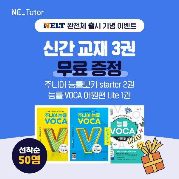 △교육플랫폼선도기업 NE능률이 온라인 영어 레벨 테스트 '넬트(NELT)'의 어휘, 문법에 이어 듣기, 독해 영역을 선보였다. 넬트는 국내 교육과정 기반으로 만들어진 내신과 수능 대비에 최적화된 영어 시험이다. 지난해 12월 출시된 어휘, 문법 영역에 이어 듣기, 독해 영역을 선보이며 전 영역을 아우르는 레벨 테스트로 경쟁력을 갖추게 됐다. 응시자의 실력에 따라 난이도가 결정돼 문제가 다르게 출제되고, 빅데이터 분석을 통해 응시자 맞춤 성적표를 제공한다. 이에 올해 6월 한국영어교육학회(KATE)의 인증을 획득하며 넬트의 타당도와 신뢰도를 입증했다. 출시를 기념해 영어 티칭 플랫폼 엔이튜터(NE Tutor) 홈페이지에서 교재 증정 이벤트를 진행한다. 넬트 '어휘+문법+듣기+독해' 응시권을 구매한 회원 50명에게 선착순으로 주니어 능률보카 스타터 2권과 능률보카 어원편 라이트 1권을 선물한다.