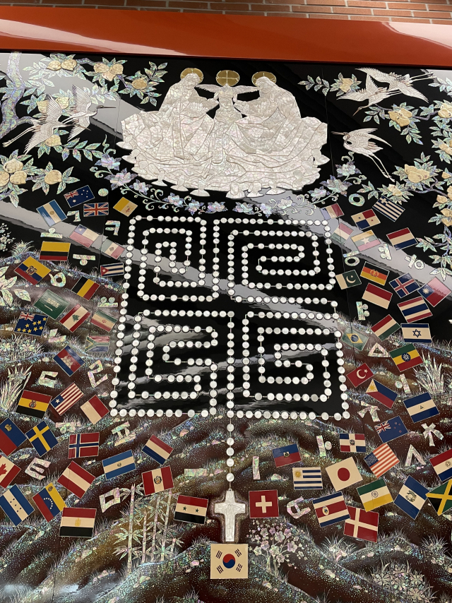 14일 해인사에 따르면 서울 중구와 경기도 여주시에 위치한 서소문 역사박물관과 옹청박물관이 작품 ‘일어나라 비추어라’ 나전 칠화를 전시하고 있다. 이들 박물관은 안내문에서 이 작품은 2014년 프란치스코 교황의 한국 방문과 한국 순례자 124위 시복을 기념하기 위해 제작했다는 것이다. 이들 박물관은 이 작품을 몇 년 전부터 영구전시 목적으로 전시하고 있다. 또한 똑같은 작품이 로마에서도 전시되고 있다는 것이다.