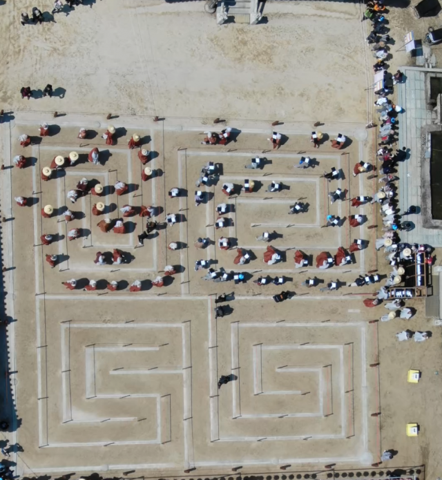 해인사에서 해인도 요잡(繞匝, 부처의 둘레를 돌아다니는)을 진행하고 있는 모습. 해인사 제공