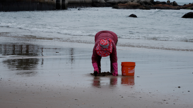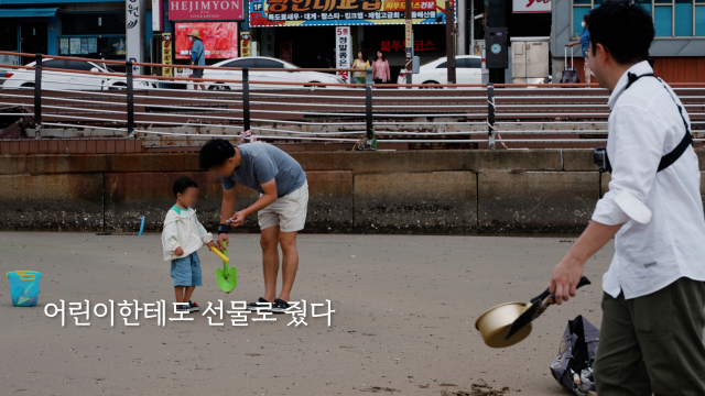 모종삽 하나만 들고 왔던 손이 부끄러워졌다. 인터넷을 뒤져보니 '맛조개 꼬시개'라는 이름으로 불리는 장비다. 고수는 양동이를 반 정도 채웠는데, 불과 10분 만에 잡은 양이라고 했다. 그는 "옛날보다 조개가 많이 없어졌다"며 "최근에 조개 축제를 한다며 조개를 들이부어 그나마 좀 낫다"고 말했다. 이어 "가게를 하는 건 아니고 그냥 살림에 보탬이 될까 싶어서 자주 나온다고" 말했다.