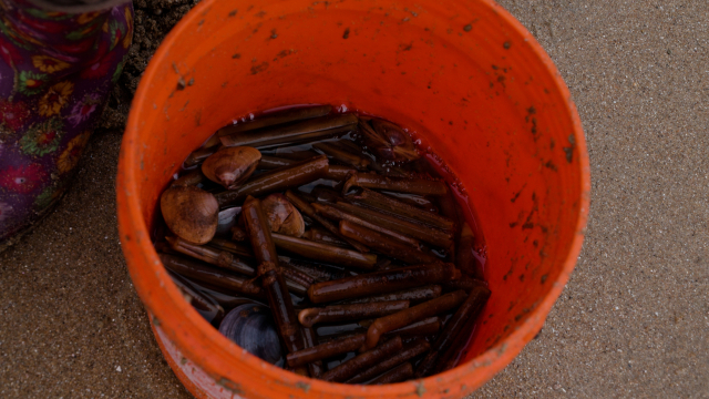 원산지가 '해수욕장'인 조개는 있었다. 하지만 아쉽게도 백합 조개나 개량 조개를 많이 발견하지는 못했다. 대신 맛조개는 쉽게 발견할 수 있었는데, 제대로 된 도구와 요령만 있다면 한 양동이를 가득 채우는 것도 짧은 시간 안에도 가능해 보였다.
