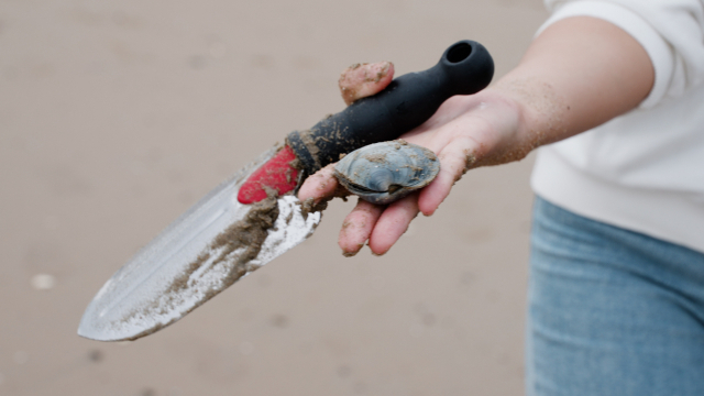 장비 탓만 하고 있을 순 없었다. 물이 최대한 빠지기를 기다렸다 다시 시도했다. 땅속에 숨은 맛조개를 꼬시개를 이용해 꼬셔서 낼 수 없다면, 맛조개가 숨은 만큼 깊고 빠르게 땅을 파내면 된다. 단순하게 접근하기로 했다. 구멍이 발견되면, 지체 없이 땅을 더 깊게 팠다.