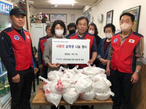부산진구 한국자유총연맹 당감1동분회(위원장 노영원)는 14일 ‘사랑의 삼계탕 나눔 행사’를 개최했다.