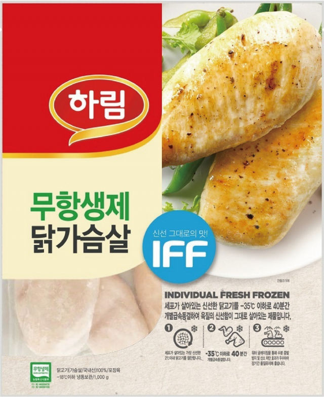 △종합식품기업 하림이 '무항생제 IFF 닭가슴살'을 출시했다. 농림축산식품부로부터 무항생제 인증을 받은 농가에서 기능성 사료를 먹여 건강하게 키운 국내산 닭을 사용한 제품이다. 먹기 좋게 손질한 닭가슴살을 영하 35℃이하에서 40분간 개별 급속 동결하는 IFF(Individual Fresh Frozen) 기법으로 신선한 육질의 부드럽고 촉촉한 식감을 고스란히 살렸다. 닭가슴살을 통째로 구워 담백한 스테이크로 즐겨도 좋고, 닭가슴살을 익힌 다음 얇게 찢어 닭개장, 닭가슴살죽 등 다양한 요리에 활용해도 잘 어울린다. 하림 공식 쇼핑몰 하림몰과 농협 하나로마트 외에 중소형 마트에서 한정 판매한다.
