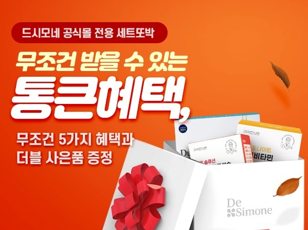 △헬스테크기업 헥토헬스케어(옛 바이오일레븐)가 가을 환절기를 맞아 '세트또박' 신청 고객에게 풍성한 사은품을 제공하는 '통큰혜택' 이벤트를 드시모네 공식몰에서 진행한다. 세트또박은 드시모네 유산균과 김석진랩 건강기능식품으로 구성된 세트를 50% 혜택 받은 가격에 정기 배송받는 서비스다. 50% 혜택은 세트또박을 신청하는 즉시 적용, 구독 기간 동안 유지되며 기간은 1년 혹은 6개월 중 선택할 수 있다. 자신에게 필요한 제품을 골라 맞춤형 세트를 직접 구성해 정기적으로 배송 받아 경제적이고 편리하면서 영양제 섭취를 습관화할 수 있다. 이달에 세트또박을 신청한 고객 전원에게는 '드시모네 데일리' 체험팩(10일분), 김석진랩 멀티비타민 등 약 11만 원 상당의 제품과 멀티팩 영양제 '또박한팩' 20% 할인 쿠폰을 제공하며 드시모네 카카오톡 채널을 추가하면 1만 원을 추가로 할인한다. 12개월 구독을 신청한 고객에게는 '드시모네 데일리 홈', 김석진랩의 멀티팩 영양제 '스포티 또박한팩', 피로 솔루션 '홍경천밀크씨슬' 등 총 30만 원 상당의 제품을 추가 증정한다. 10월 세트또박은 보장균수 2000억CFU(보장균수)의 고함량 프로바이오틱스 드시모네 데일리 혹은 '드시모네 캡슐' 중 1개와 김석진랩 건강기능식품 중 1개로 구성되며 사은품으로 약 7만 원 상당의 드시모네 듀얼스틱 장케어 1박스를 증정한다. 아이들을 위한 '키즈 세트또박'은 '드시모네 키즈' 제품 중 1개와 김석진랩 건강기능식품 중 1개를 선택할 수 있다. 키즈 세트또박 사은품은 약 18만 원 상당의 '김석진랩 키즈 오메가3구미' 2박스다. 이벤트는 이달 말까지 진행되며, 보다 자세한 세트 구성·사은품은 또박케어 홈페이지·앱을 통해 확인할 수 있다.
