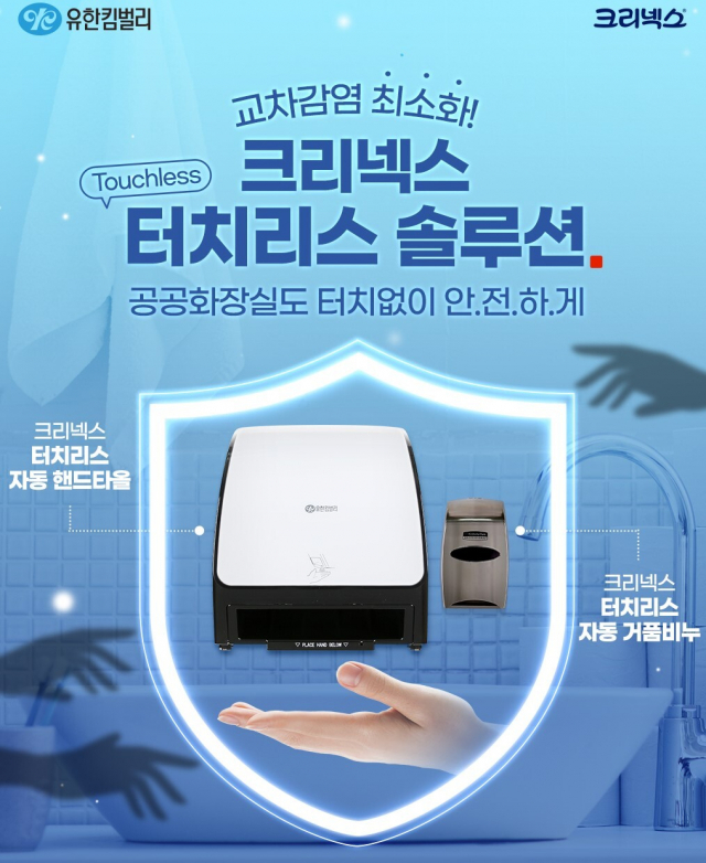 △유한킴벌리가 공공화장실 이용 시 교차감염 우려를 최소화할 수 있는 '크리넥스 터치리스 자동 핸드타올과 거품비누'를 출시했다. 센서가 손의 움직임을 감지해서 자동으로 핸드타올이 나오도록 설계돼 있다. 사용한 후 3초 이내에 재 사용할 경우 두 번째 타올은 10% 짧게 조절돼 사용량까지 절감해 준다. 자동 거품비누 또한 센서를 통해 0.6ml 정량이 자동으로 분사될 뿐만 아니라 80% 이상 생분해(내용물 기준, 자사 시험 수치, KS I ISO 7827 기준)되는 거품비누를 적용하고 있다.