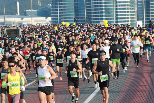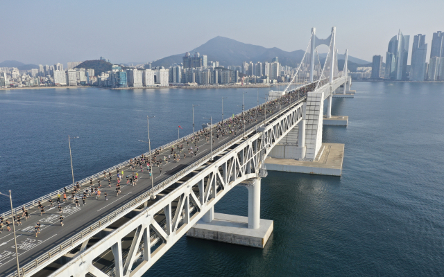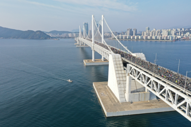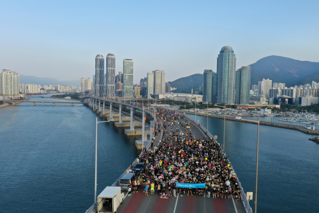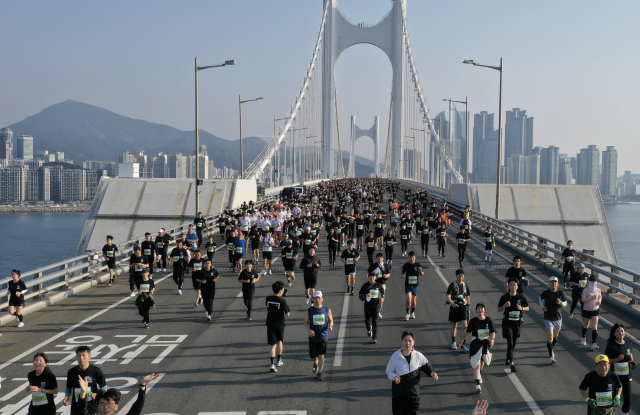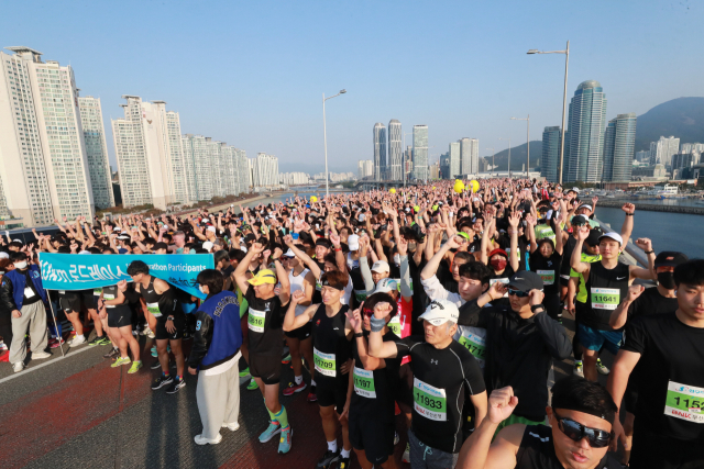 [포토뉴스] 3년 만에 열린 '부산바다마라톤 대회'…1만 명 광안대교 달렸다