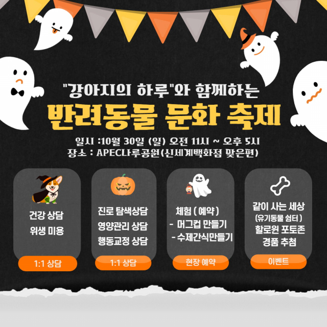 이와 관련 오는 30일 부산에서 ‘반려동물 문화축제’(사진)가 예정돼 있어 반려인들의 주목을 받고 있다. 해운대구 APEC나루공원에서 개최되는 이날 문화축제는 올해 부산경제진흥원으로부터 반려동물 수제점 유망업체로 선정된 ‘강아지의 하루’가 주관한다. 반려동물의 건강상담과 위생미용에 대한 관리방법, 행동교정상담, 영양상담 등 반려인들이 알아야 할 상식부터 진로탐색에 이르기까지 각 분야의 전문가와 1 대 1 상담을 할 수 있다. 또 반려동물을 위한 수제 간식 만들기, 머그잔 꾸미기, 포토존 이벤트 등 다채로운 행사로 방문객들에게 볼거리를 제공할 예정이다.