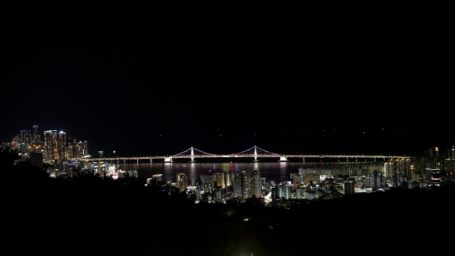 이곳에서 사진을 찍기 좋은 이유는 또 있다. 바로 구도다. 생활관 앞 공터나 전망대서 사진을 찍으면 자연스럽게 '완벽한 사진 구도'가 잡힌다. 제일 아래 어두운 배경의 금련산 숲과 나무가 사진의 중심을 잡아준다. 그 위에는 아파트와 가로수 불빛 등 도심의 불빛이 자리한다. 그리고 다시 어두운 바다가, 다시 그 위에는 반짝이는 광안대교가 놓인다. 그리고 불꽃이 터질 하늘이 광안대교 위에 놓이게 된다. 누군가 그림을 그려 놓은 듯 완벽한 구도다.