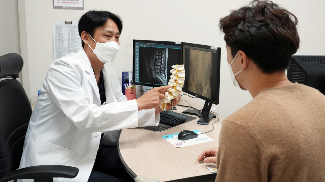 척추센터 최병완 교수가 허리 디스크의 원인과 치료법에 대해 설명하고 있다. 인제대학교해운대백병원 제공