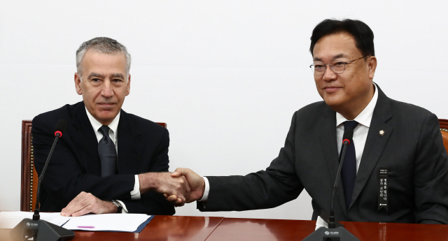 국민의힘 정진석 비상대책위원장이 1일 국회에서 필립 골드버그 주한 미국대사를 접견했다. 골드버그 대사는 이날 더불어민주당 이재명 대표도 만났다. 김종호 기자 kimjh@