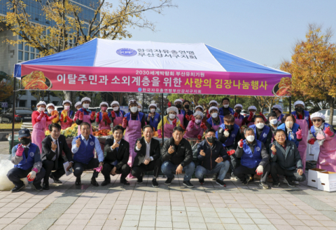 한국자유총연맹 강서구지회(지회장 최정진)는 2일 강서구청 야외 광장에서 북한이탈주민과 장애인 등 130여 세대를 위해 직접 만든 김장 김치를 지원하는 김장 나눔을 실시했다.