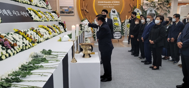 한국자유총연맹 부산광역시지부(회장 신한춘) 회장단과 조직간부 30여 명은 2일 이태원 참사 희생자들을 추모하기 위해 부산시청 1층 대강당 로비 앞에 마련된 합동분향소를 찾아 조문했다.