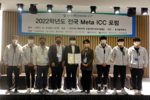동주대학교(총장 정학영)는 ‘2022 전국 Meta ICC포럼’에서 스포츠재활과 팀이 콘텐츠 분야에 뉴노멀시대 신기술을 적용한 스마트 컨디션 프로그램개발로 최우수상을 수상하였다고 밝혔다. 강원도립대학을 비롯한 9개 대학이 공동으로 주최하고 교육부와 연구재단 후원으로 지난 3일 코트야드 메리어트 수원 컨벤션홀에서 교육부 LINC3.0 사업의 기업협업센터(ICC)에 공유와 협업 중인 산업체와 교수진이 함께 참석한 Meta ICC포럼에서 전국대학 공학 3개팀과 디자인 3개팀 콘텐츠 3개팀 등이 연구 과제를 발표하였다.