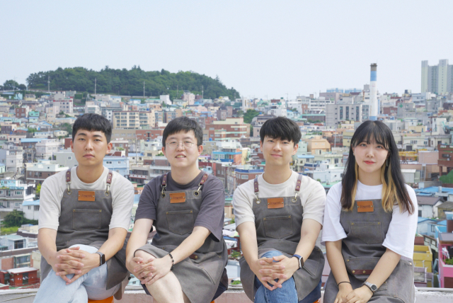 2022 지역신문 컨퍼런스에서 ‘산복빨래방’ 프로젝트로 대상을 받은 부산일보 편집국 디지털미디어부 2030팀 이재화 PD, 김준용 기자, 이상배 기자, 김보경 PD(왼쪽부터).