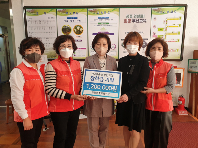 부산 사상구 주례2동 통장협의회(회장 박인순)는 2일 주례여자고등학교(교장 오경옥)에 장학금 120만 원을 전달했다.
