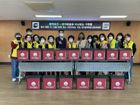 2022년 샛디산복마을 주민공모사업에 선정되어 진행하는 우편함 교체 사업을 통해 지역 주민들의 의견을 수렴하고 12통 일원의 노후화된 우편함 58개를 새 우편함으로 교체하여 마을 이미지를 개선할 예정이다.