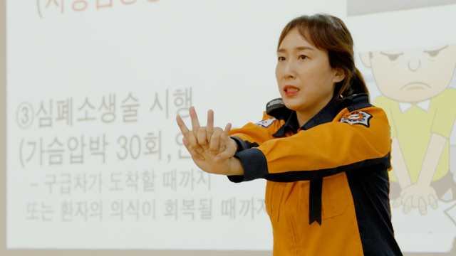 119안전체험관에서 구급안전 교육을 담당하고 있는 김민경 소방장은 "실제로 심폐소생술 가이드라인은 5년 주기로 바뀐다"며 "2015년 이전까지는 가슴 압박 30회, 인공호흡 2번을 하라고 했는데, 현재는 가슴 압박에만 집중하는 것으로 바뀌었다"고 했다. 인공호흡에 숙달되지 않은 일반인이 호흡법을 하는 것 보다 가슴 압박에 집중하는 게 요구조자(재난 따위를 당하여 구조가 필요한 사람)의 생존율을 높이는 방법이기 때문이다. 그래서 CPR은 한번 배워서 끝나는 게 아니라 지속해서 '업그레이드'해야 하는 응급처치 방법이다. 김 소방장에게 본격적으로 CPR을 배워봤다.