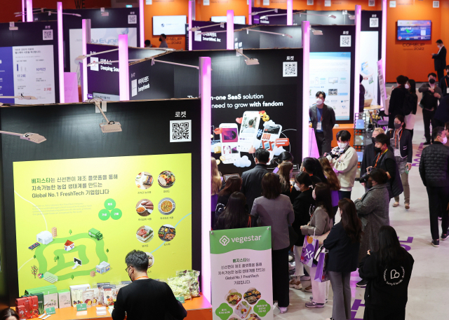 9일 오전 서울 중구 동대문디자인플라자에서 열린 스타트업 행사 '컴업 2022'를 찾은 관람객들이 부스를 둘러보고 있다. 연합뉴스