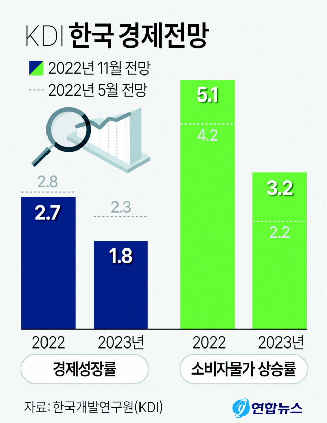 내년 성장률은 1.8%의 낮은 성장률을 기록할 전망이라고 추정했다. 민간소비는 코로나19 영향에서 점차 벗어나며 서비스 소비가 회복되겠지만 고물가로 인한 실질 구매력 저하, 시장금리 상승으로 상품소비가 둔화되면서 올해(4.7%)보다 낮은 3.1%의 증가율을 기록할 것이라고 내다봤다.