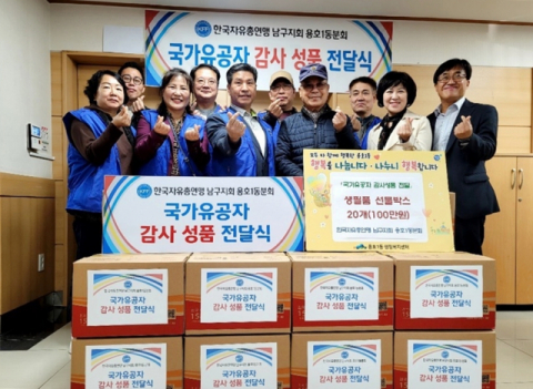 한국자유총연맹 남구지회 용호1동분회(회장 최성환)는 11월 9일 관내 국가유공자 20세대를 대상으로 감사 성품 전달식 행사를 개최했다.