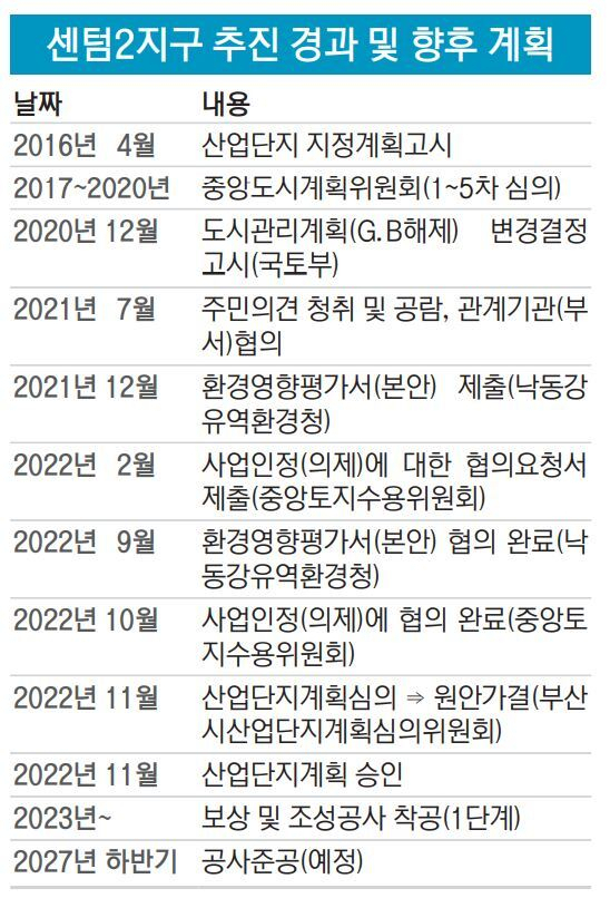 부산시는 11일 부산시 산업단지계획심의위원회에서 ‘센텀2지구 도시첨단산업단지계획’이 원안 의결되었다고 12일 밝혔다. 부산시는 올해 중으로 산업단지계획을 승인하고 내년부터 본격적으로 보상 협의와 착공에 들어간다는 방침이다.