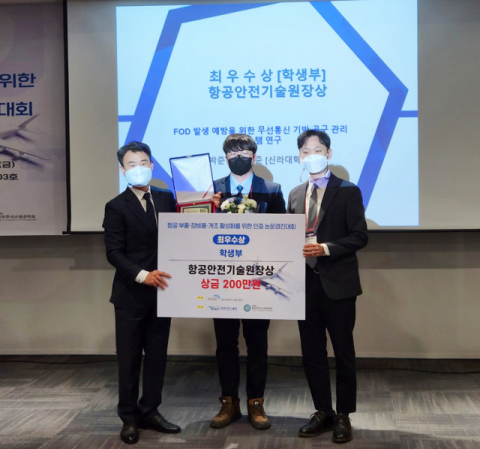 신라대 항공정비학과 3학년 박준이 학생과 김명준 지도교수는 ‘FOD 발생 예방을 위한 무선통신 기반 공구 관리 시스템 연구’를 주제로 학생부에 참가해 대회 최고상인 최우수상과 함께 부상으로 200만 원의 상금을 거머쥐었다.