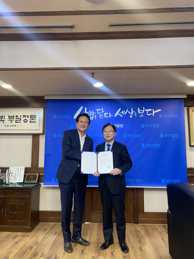 오스카 츠요시(오른쪽) 주부산일본국총영사관 총영사는 16일 부산일보를 방문해 김진수(왼쪽) 대표이사 사장과 환담을 했다.