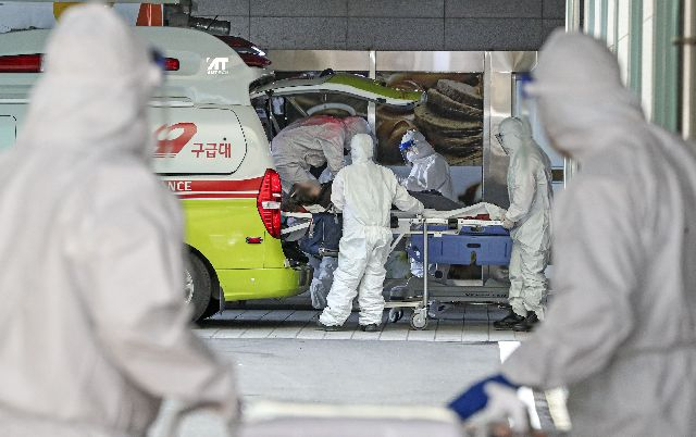 올 3월 부산의료원에서 의료진들이 구급차로 이송한 환자를 병실로 옮기는 모습. 부산일보DB