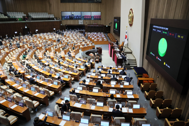 최근 국회 본회의에서 북한 탄도미사일 도발 규탄 및 중단 촉구 결의안이 의결되고 있다. 연합뉴스