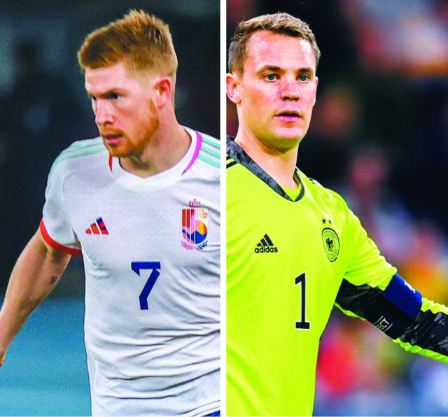 바이에른 뮌헨(독일)과 맨체스터 시티(잉글랜드)가 2022 카타르 월드컵 출전 선수 최다 배출 구단 1, 2위를 다툰다. 왼쪽부터 맨체스터 시티의 케빈 더브라위너(벨기에), 뮌헨의 마누엘 노이어(독일). AFP연합뉴스