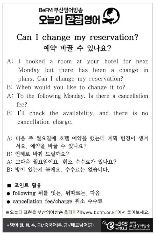 [관광 영어] 예약 바꿀 수 있나요?