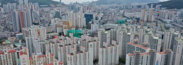 다음 달인 12월 전국 아파트 입주 물량은 69개 단지, 3만 5211가구로 13개월 만에 최대치에 이른다. 부산에서도 남구 용호동 데시앙해링턴플레이스파크시티 등 3곳에서 모두 3489가구가 입주할 예정이다. 사진은 부산 연제구 일대 도심 전경. 부산일보DB