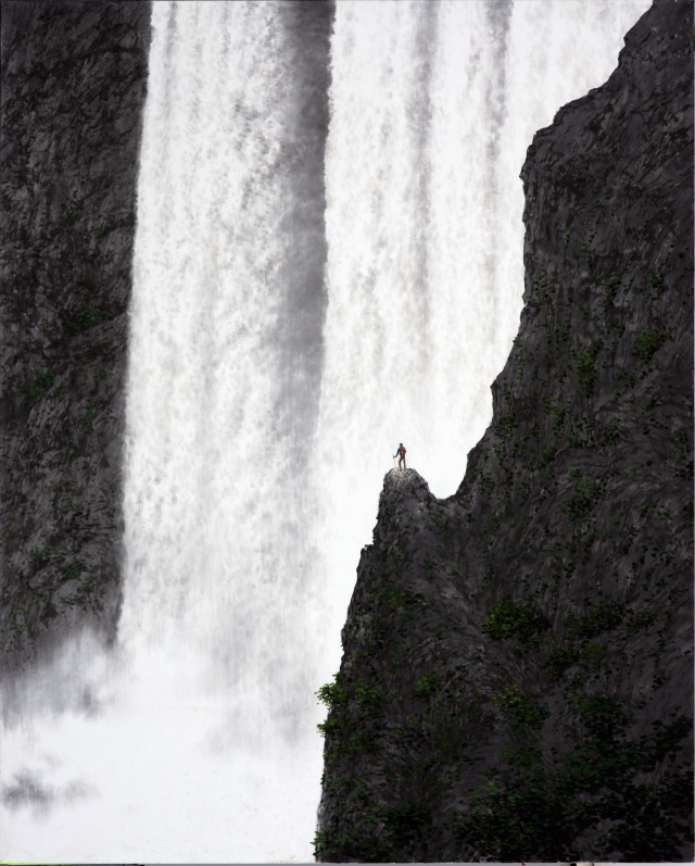 “한마디로 제가 길을 잃은 거죠. 이번 전시에서는 한국적인 것과 서양적인 것, 수묵과 채색, 전통과 현대 그리고 표현 문제에 있어 그리려고 하는 대상과 나의 경계, 드러냄과 숨김, 의식과 무의식의 양쪽을 넘나드는 ‘경계’에 나를 두고자 했어요.” 갤러리 입구 거대한 폭포를 그린 ‘관물청심-폭포2’에 등장하는 사람은 어쩌면 새로운 길을 찾는 이민한 작가의 뒷모습이 아니었을까.