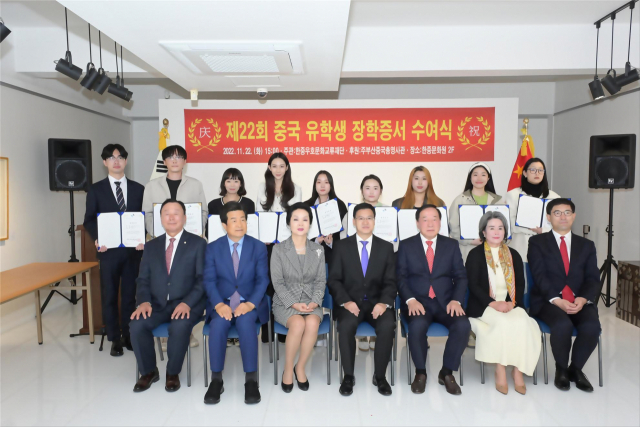 한중우호문화교류재단(이사장 이시영)은 22일 한중문화원에서 ‘제22회 중국 유학생 장학증서 수여식’을 열었다.